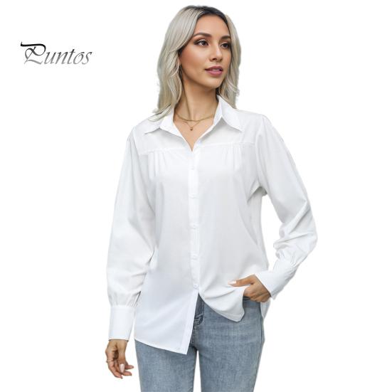 Женская рубашка с лацканами, длинным рукавом, однотонная однобортная рубашка, свободный крой, повседневные топы для работы и повседневной носки S белый