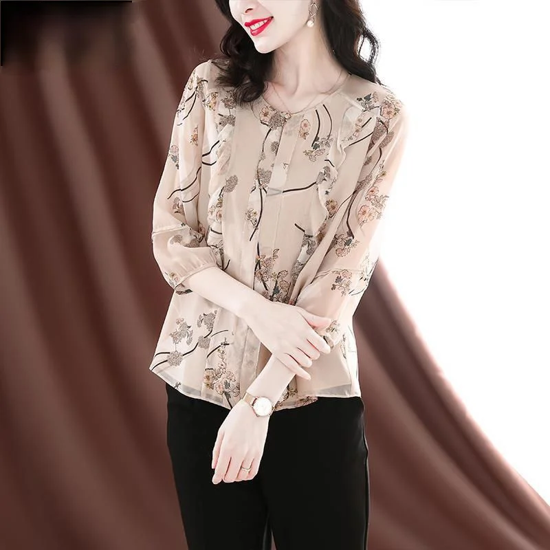 Женская рубашка с V-образным вырезом, Новинка лета 2021, чувственный Тонкий Топ с рукавом три четверти в виде листьев лотоса