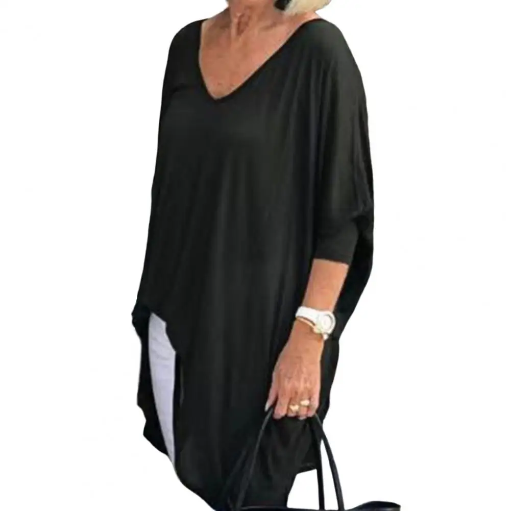 Женская рубашка с V-образным вырезом, блузка-туника, однотонная женская модная рубашка, Топ