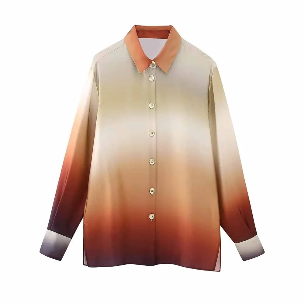 Женская рубашка TRAF, модная новинка, топ с шелковой атласной текстурой, повседневная женская элегантная блузка в стиле ретро с длинным рукавом, 7888173