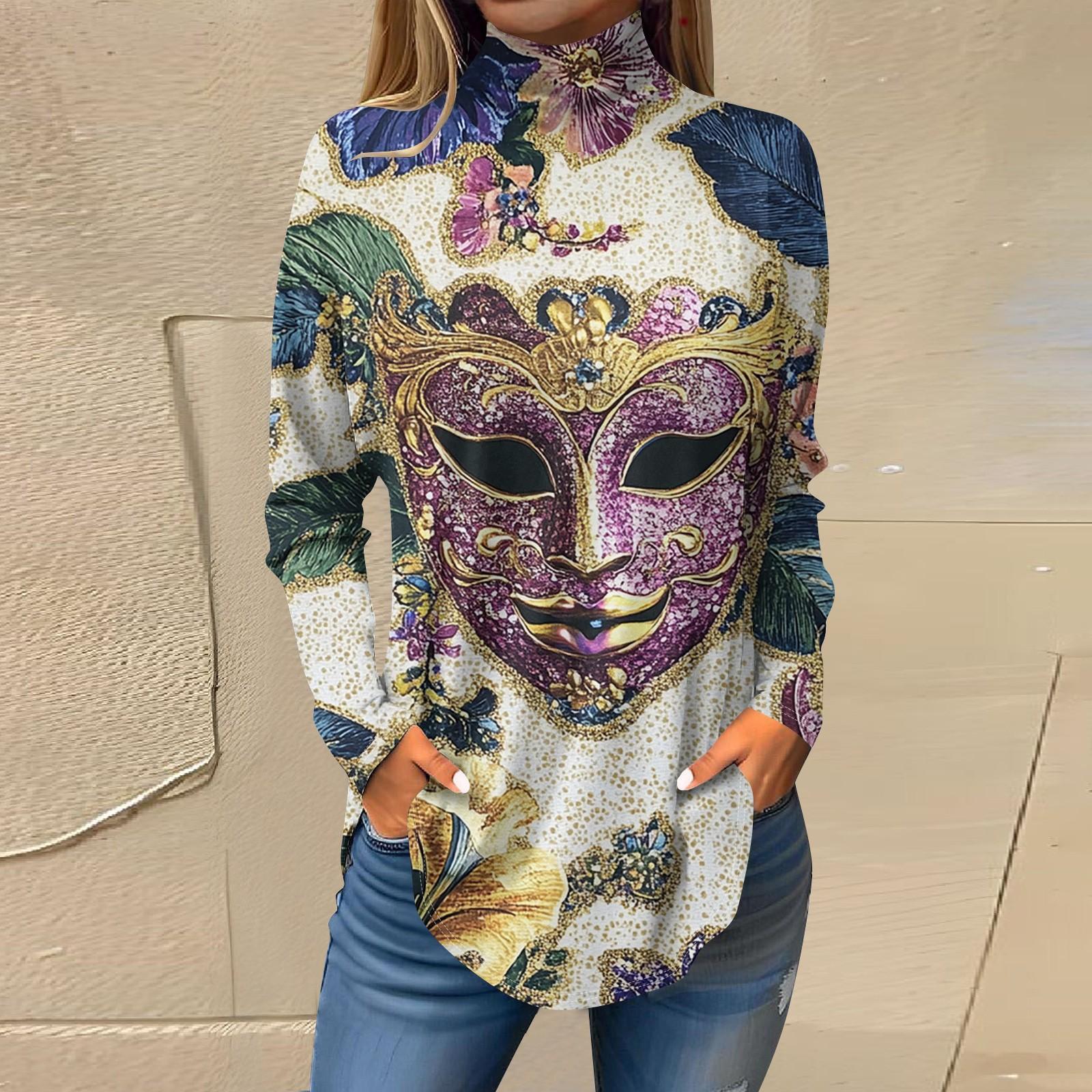Женская свободная водолазка с принтом «Карнавал» с длинным рукавом, футболка, топ, джемпер XL белый