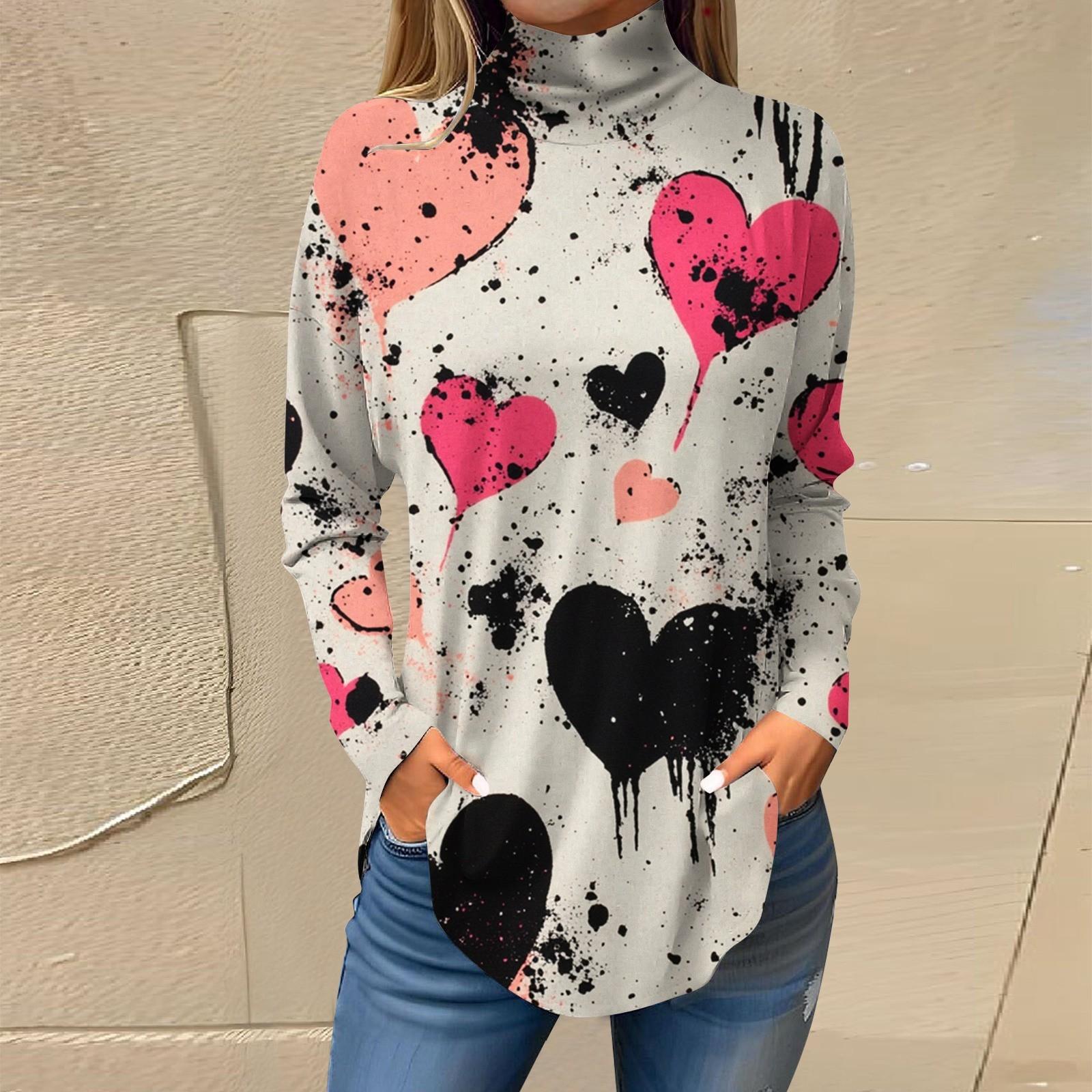 Женская свободная водолазка с принтом ко Дню святого Валентина, футболка с длинными рукавами, топ и джемпер XL белый