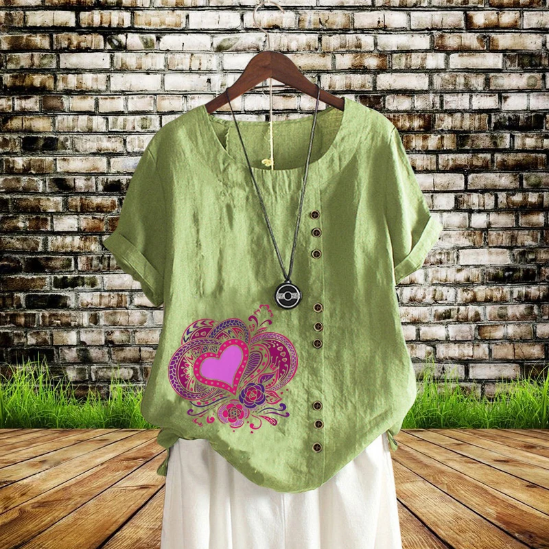 Женская свободная льняная футболка с коротким рукавом и круглым вырезом