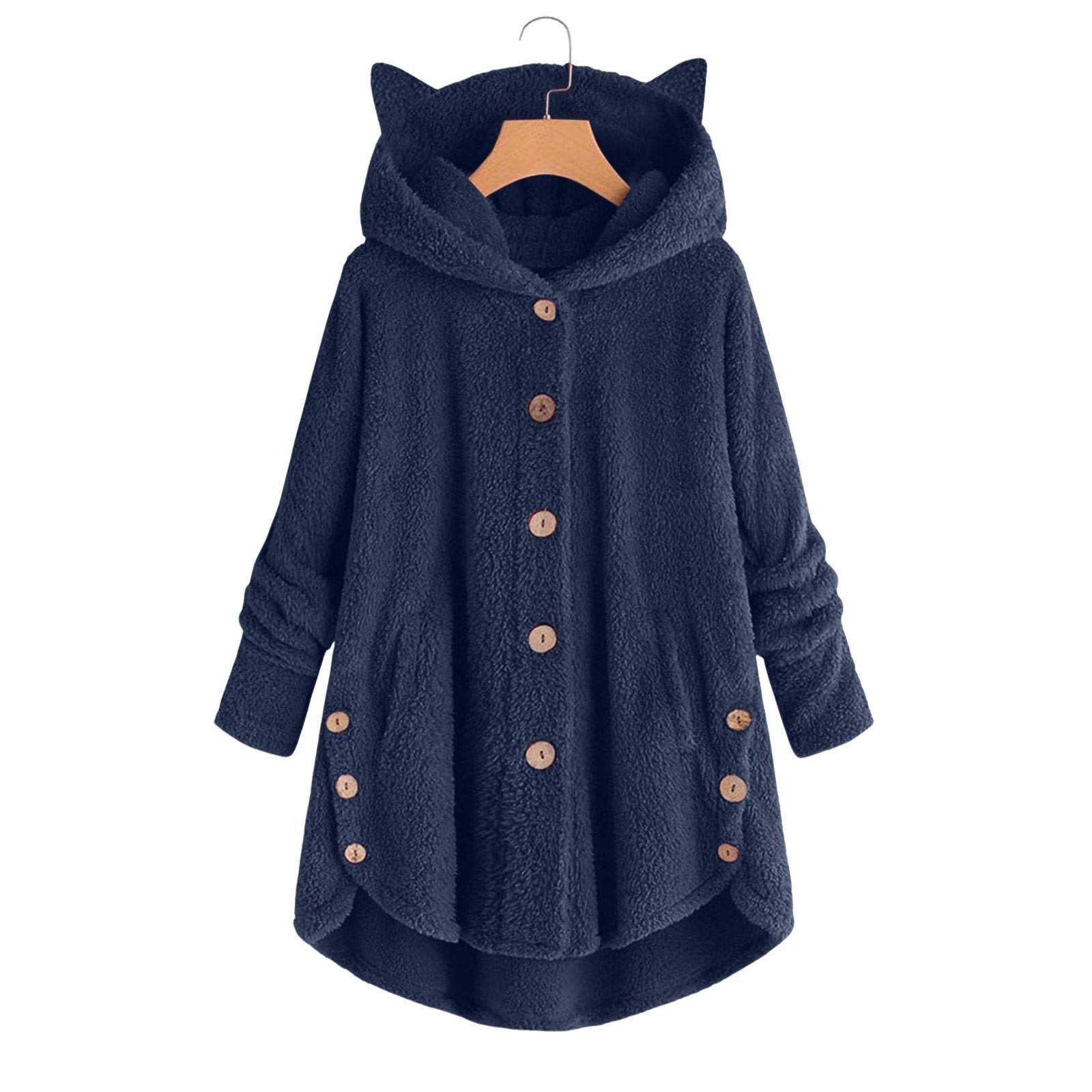 Женская свободная плюшевая однотонная однобортная куртка на молнии с карманом и капюшоном XXXL темно-синий