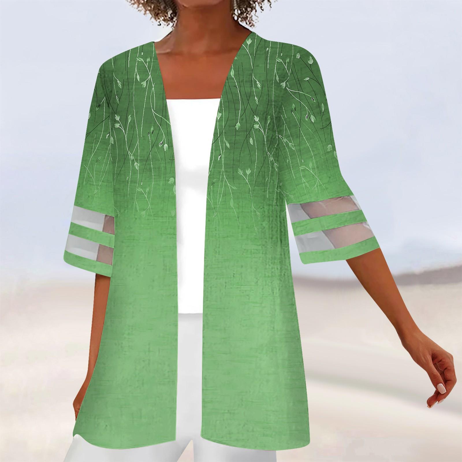 Женская свободная повседневная кружевная рубашка с рукавом четверть с принтом, кардиган, топ XL зелёный