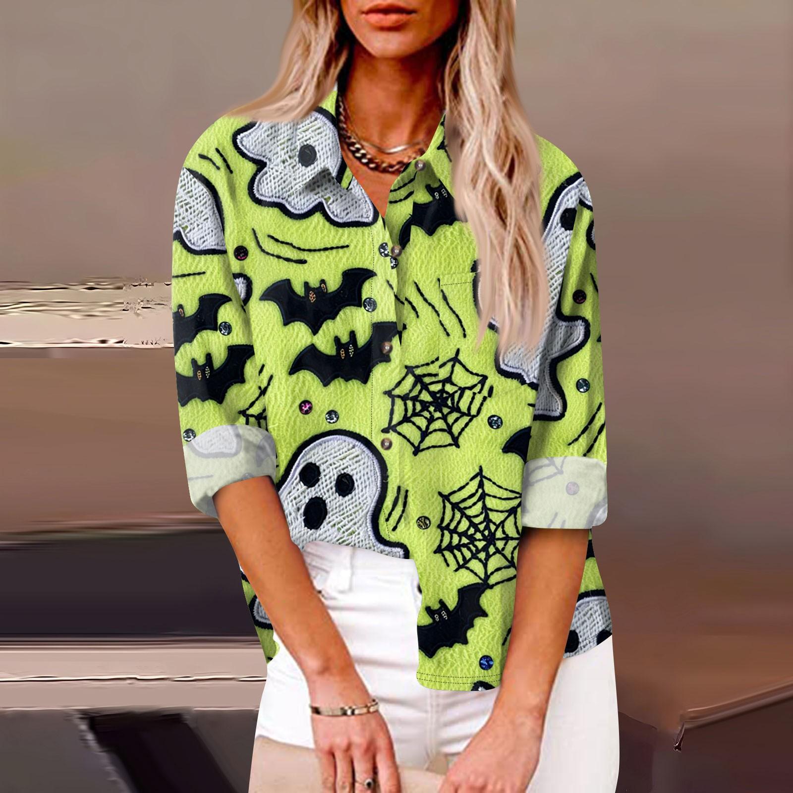 Женская свободная повседневная рубашка на пуговицах с длинными рукавами и кардиганом с градиентным принтом и карманом L