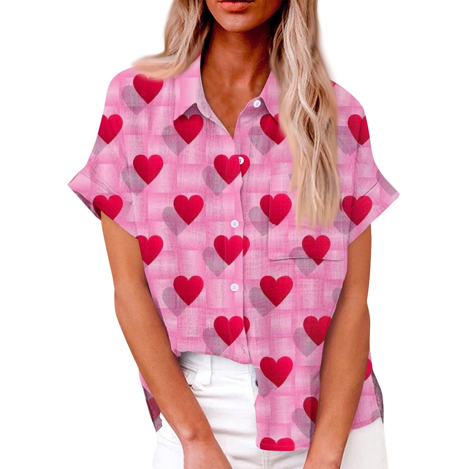 Женская свободная повседневная рубашка с короткими рукавами и отворотом с цифровым принтом и карманом L