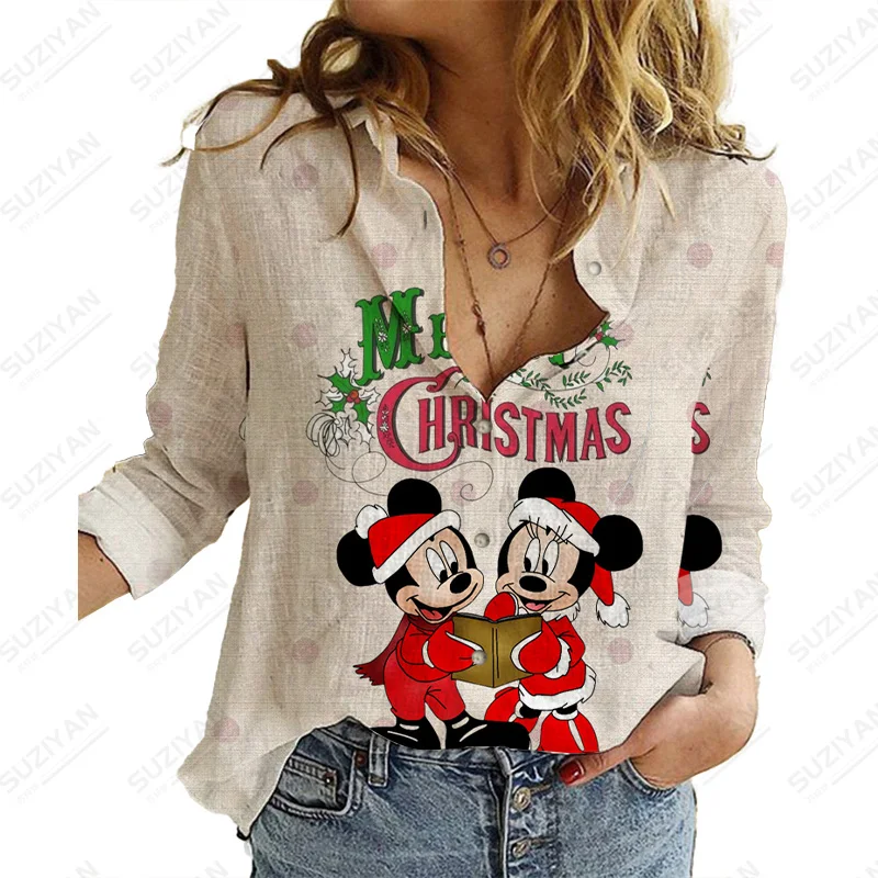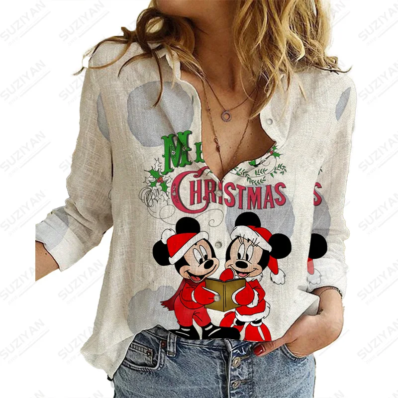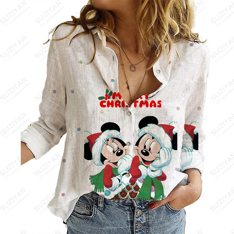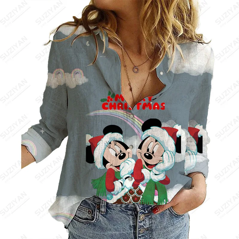 Женская свободная рубашка с воротником и пуговицами, с Микки Маусом