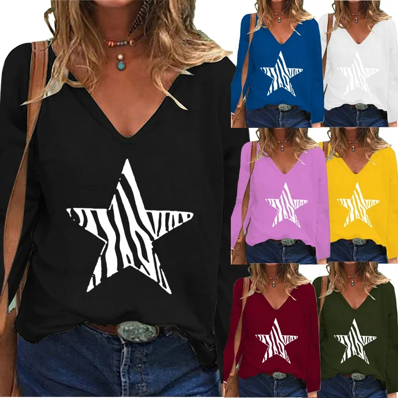 Женская свободная рубашка с длинным рукавом и глубоким V-образным вырезом
