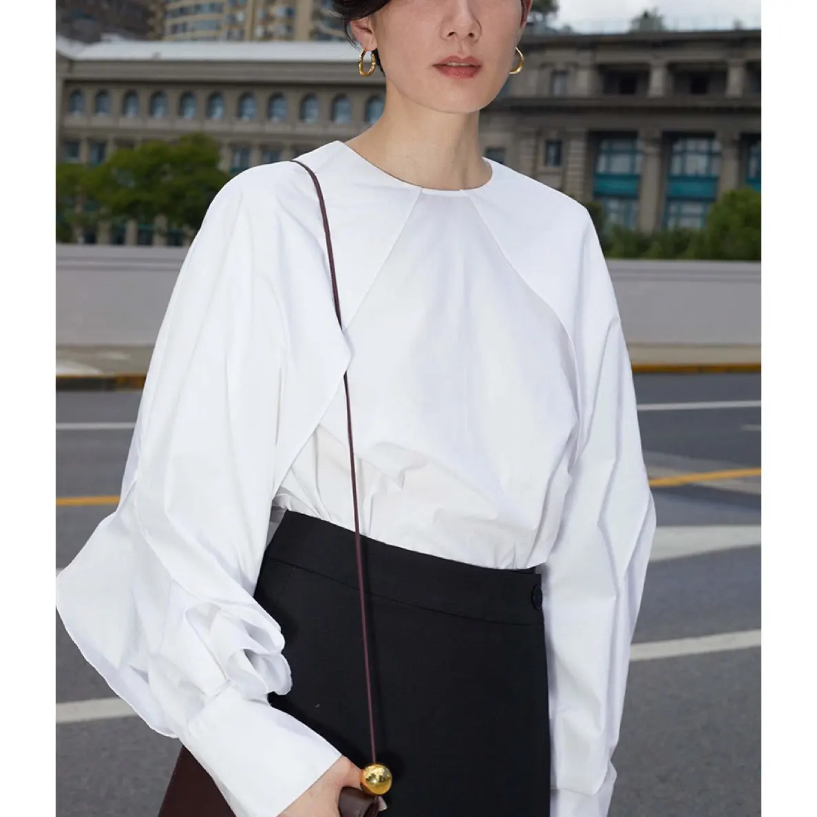 Женская свободная рубашка с длинным рукавом, элегантная Деловая блузка с круглым вырезом, весна 2023