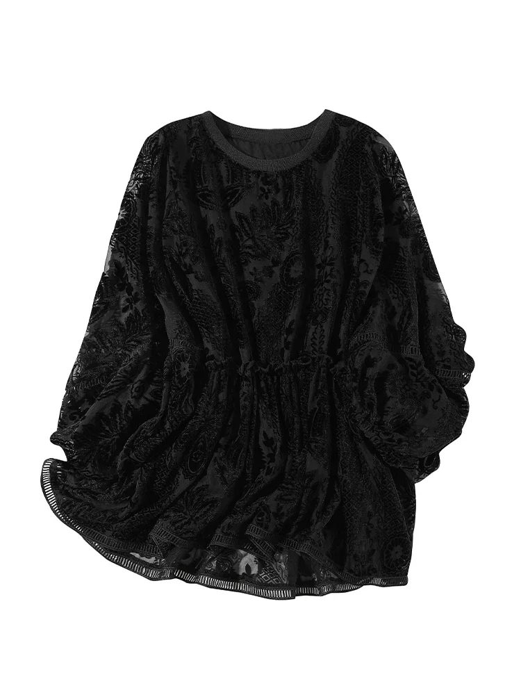 Женская свободная футболка в стиле ретро, черная футболка с длинным рукавом и флокированием, осень 2021