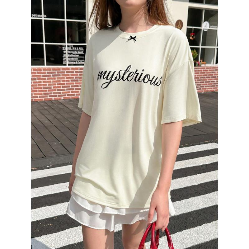 Женская свободная футболка свободного покроя с круглым вырезом и коротким рукавом, с принтом мистического позиционирования и 3D-бантом XS