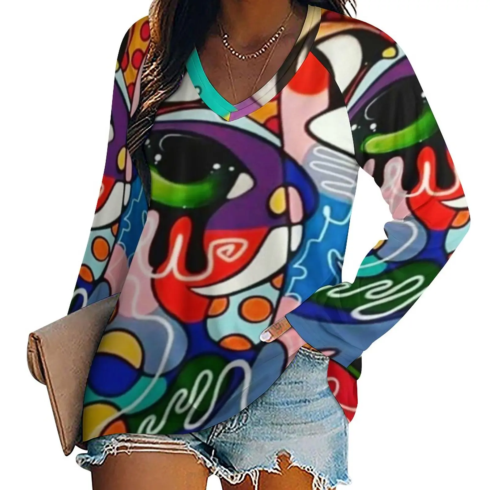 Женская свободная футболка с длинным рукавом, с разноцветным принтом глаз