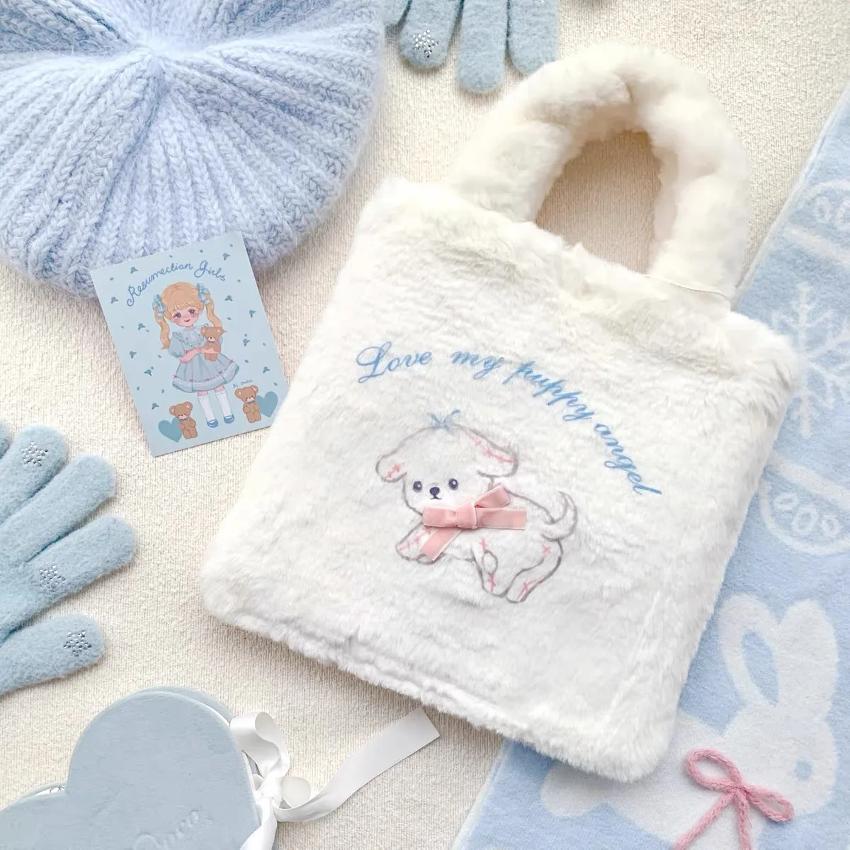 Женская симпатичная сумка на плечо 2024, белая плюшевая сумка для девочки, женская сумка с мультяшным рисунком