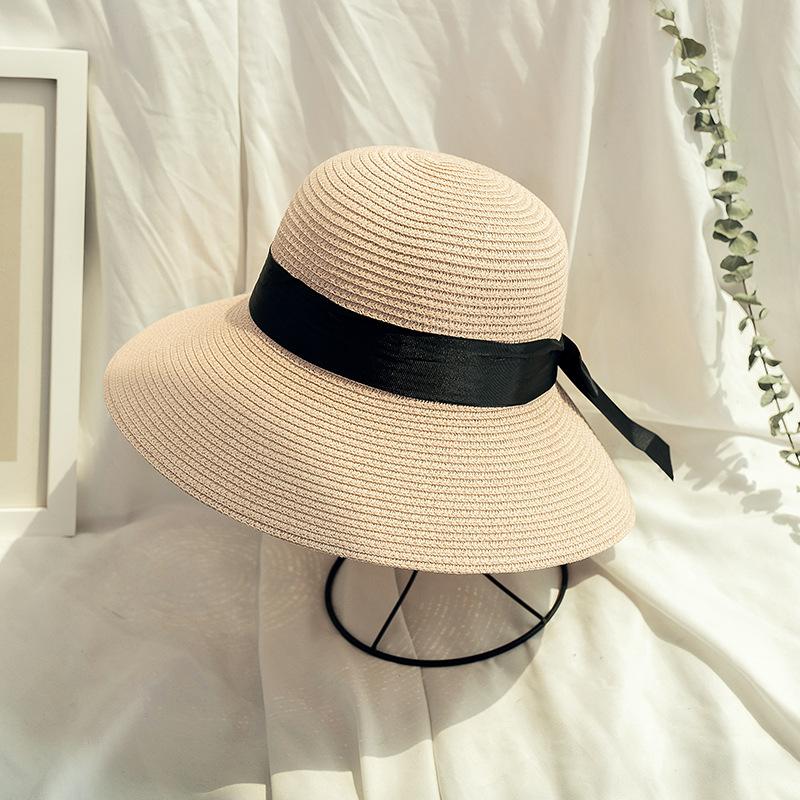 Женская соломенная шляпа в стиле бохо с бантом, простая однотонная широкополая шляпа от солнца для путешествий на свежем воздухе и пляжа, элегантный летний аксессуар для повседневного использования
