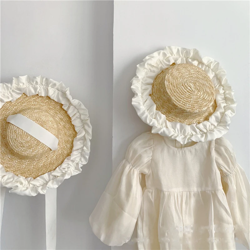Женская соломенная шляпа в французском стиле, летняя Милая пляжная шляпа с атласным кружевом