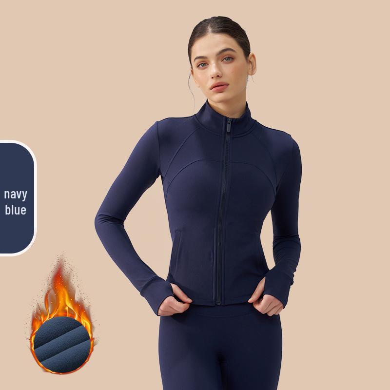 Женская спортивная куртка для йоги облегающего кроя со стойкой и без пальцев - Толстый, тонкий флис для осени и зимы. Extra Large
