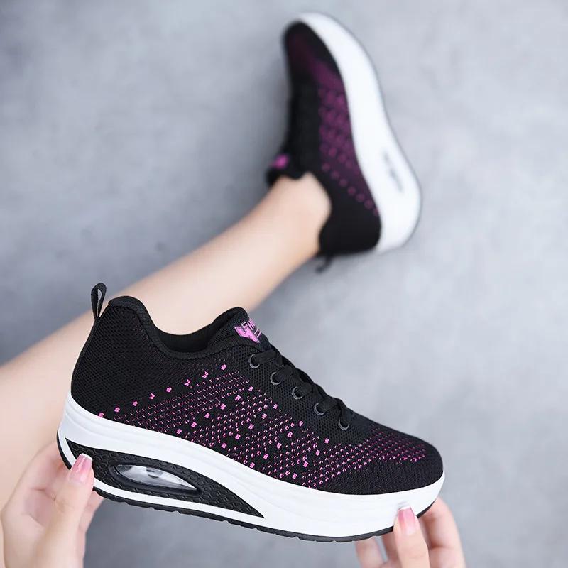 Женская спортивная обувь Дышащая Полая Повседневная Уличная Удобная Обувь Легкая Толстая Подошва Большой Размер Женская Обувь 35 чёрный