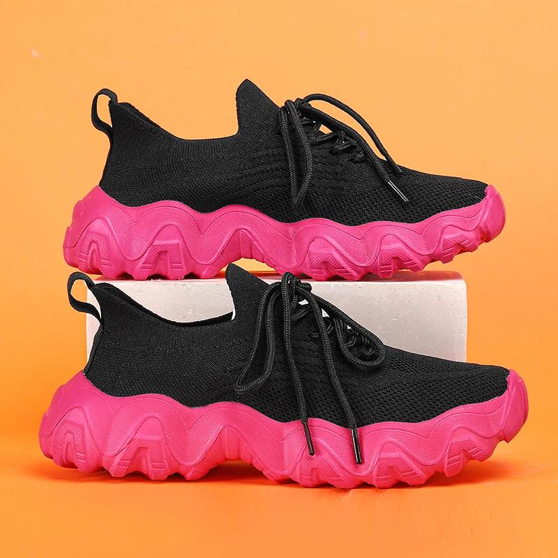 Женская спортивная обувь с дышащей и нескользящей сеткой, модная, удобная и повседневная, нейтрального черного цвета, новая обувь на плоской подошве 36 розовый