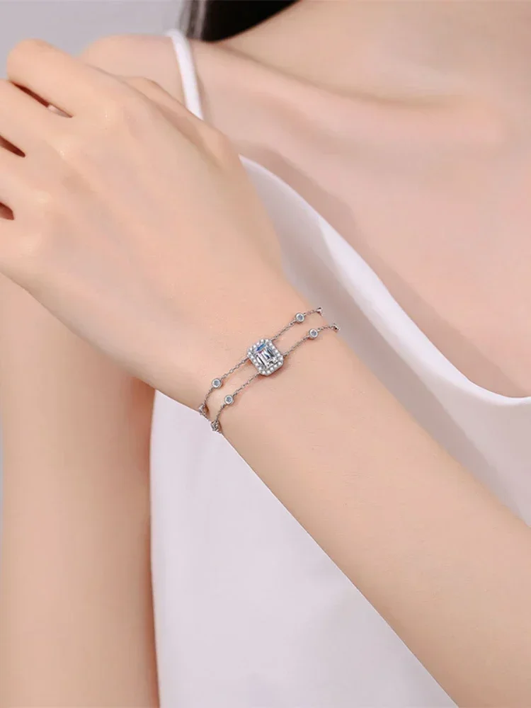 Модный браслет-подвеска из муассанита, высокое качество, серебро S925, изумрудная огранка, браслет из муассанита, прямоугольный роскошный ювелирный подарок с
