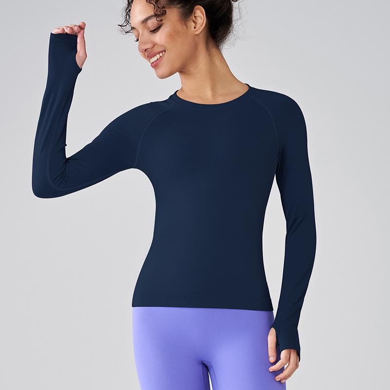 Женская спортивная футболка с длинным рукавом и круглым вырезом - облегающая, дышащая, модная, для фитнеса и йоги Large темно-синий