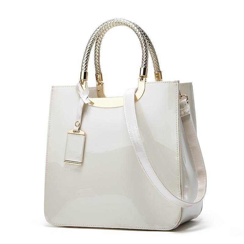 Женская стильная лакированная кожаная сумка-тоут большой вместимости на одно плечо через плечо бежевый