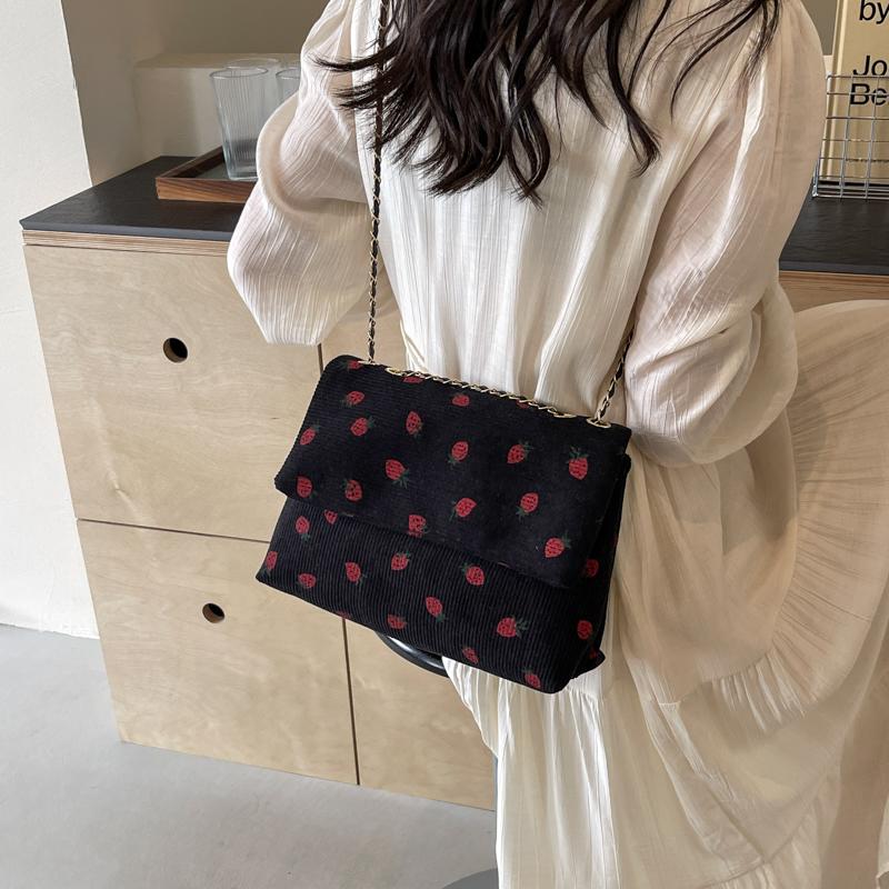 Женская стильная сумка с застежкой-защелкой Strawberry Chic Hobo Bag Большая вместимость Модный кошелек через плечо с цепочным ремешком для вечеринки и отпуска чёрный