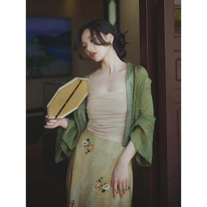 Новинка 2024, женское повседневное летнее улучшенное платье hanfu в китайском стиле, кардиган на бретелях, Повседневное платье, модель a62