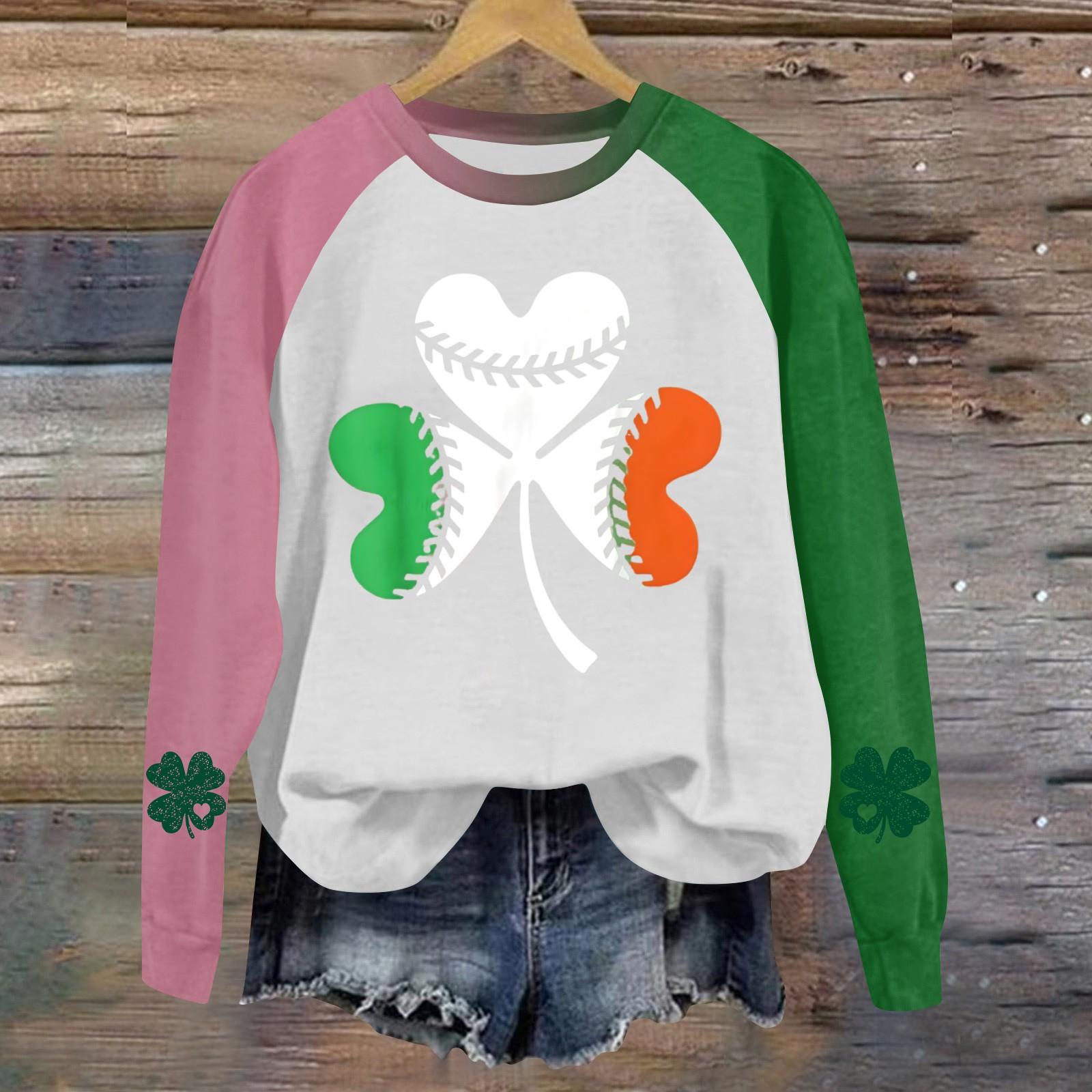 Женская стильная ул.. Свитшот с длинными рукавами и круглым вырезом с принтом ко Дню Святого Патрика M