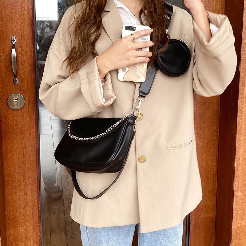 Женская сумка Сумки через плечо Новые модные сумки для наушников Досуг Универсальные черные сумки с цепочкой Корейские трендовые сумки через плечо для активного отдыха
