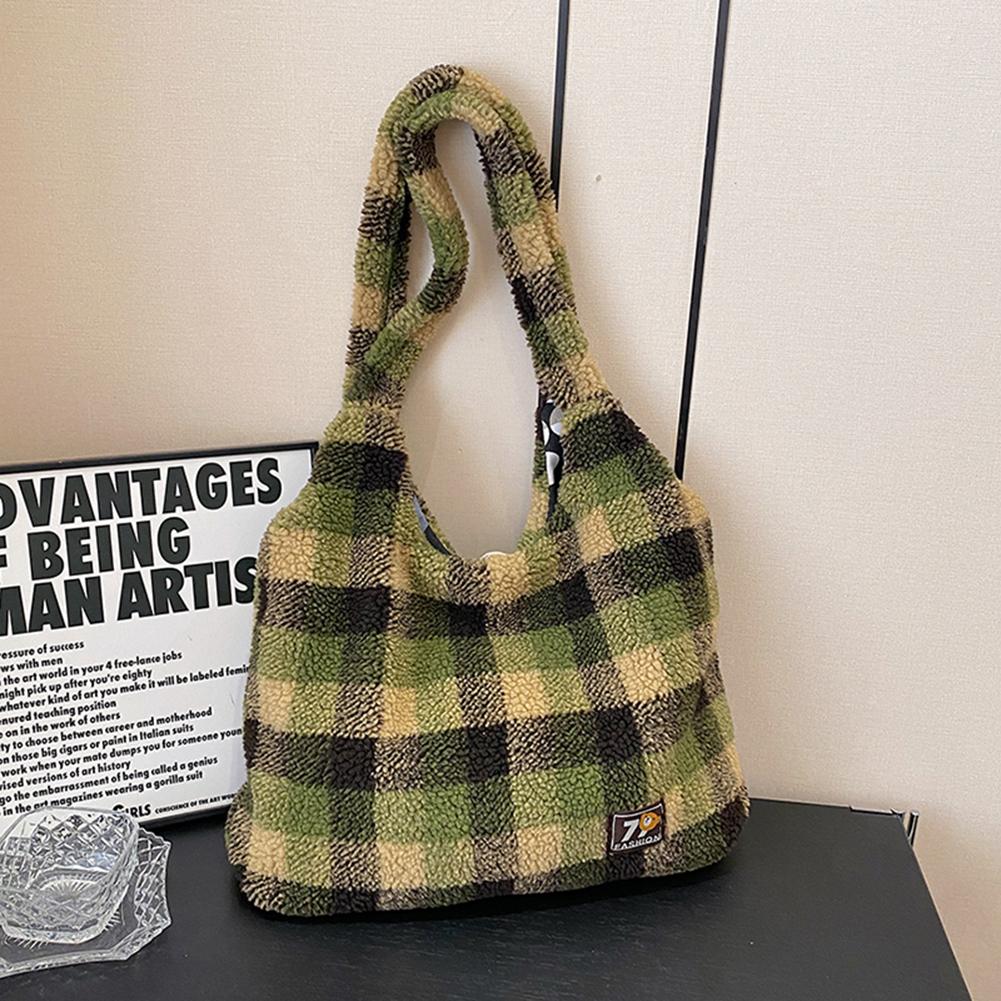 Женская сумка для покупок, стильная, из овечьей шерсти, милая, пушистая, ретро, плюшевая, сумка через плечо для шопинга, работы, ежедневного использования, кошелек-тоут зелёный