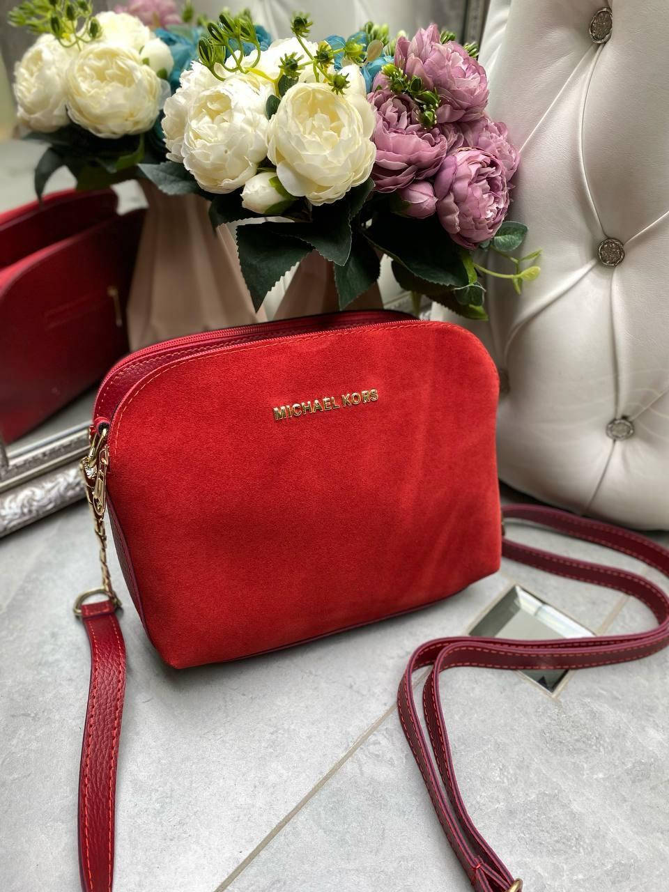 Женская сумка замшевая через плечо молодежная сумочка клатч стильная красная натуральная замша+кожзам