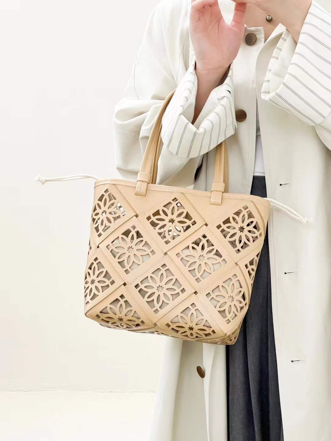 Женская сумка из кожи для поездок на работу, выдолбленная сумка-тоут, большая вместительная сумка, ручная сумка, новая маленькая квадратная сумка 22x10x22 CM