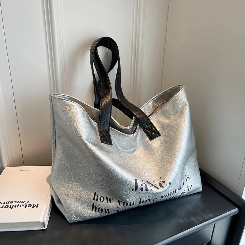 Женская сумка из мягкой кожи, саквояж на плечо с надписью, портативный вместительный дорожный тоут для ноутбука, дамская сумочка