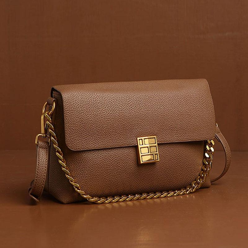 Женская сумка из натуральной кожи, осень/зима, новая, простая, ретро, сумка через плечо, большая вместимость, сумка через плечо с цепочкой