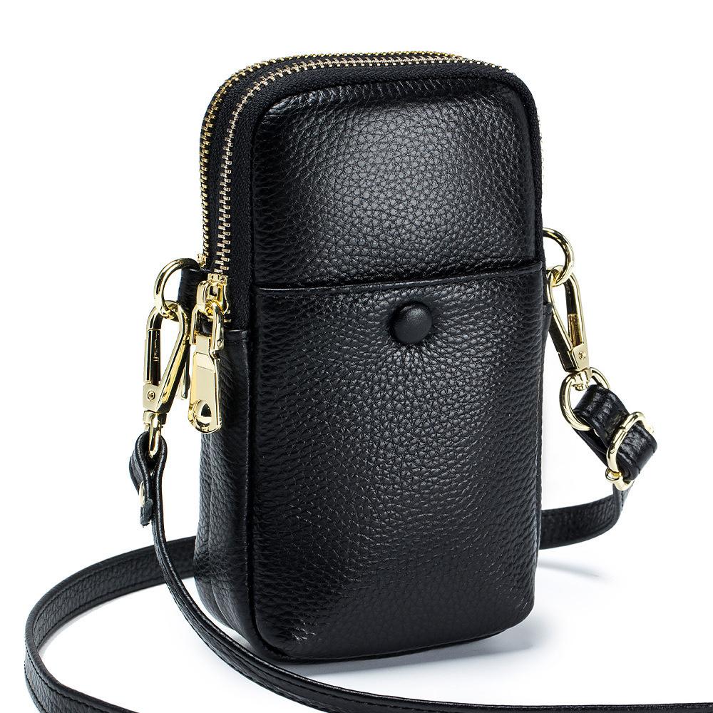 Женская сумка из натуральной кожи с двойной молнией на плечо, сумка из коровьей кожи для мобильного телефона, модная женская маленькая сумка через плечо