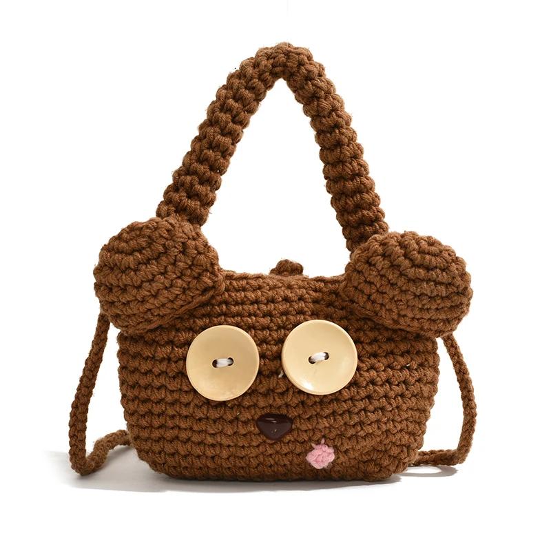 Женская сумка из ткани ручной работы, шерстяная сумка через плечо, сумка через плечо, симпатичная анимация медведя, вязаная крючком девушка, сумка для мобильного телефона