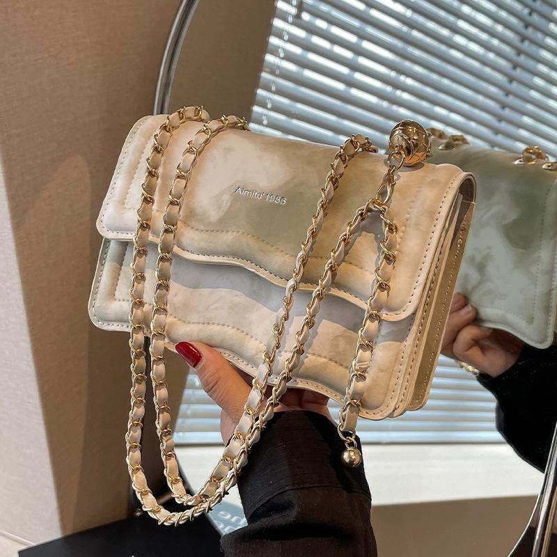 Женская сумка имеет простую фактуру и стиль сумки в иностранном стиле.. Женская маленькая квадратная сумка через плечо на одно плечо с изысканной цепочкой зелёный