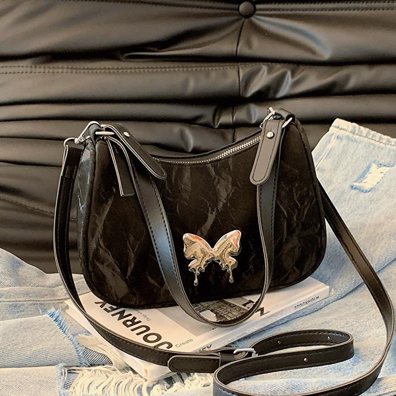 Женская сумка-мешок в иностранном стиле 2024 года, новая популярная эстетическая сумка-мессенджер с цепочкой, персонализированная повседневная сумка через плечо подмышкой чёрный