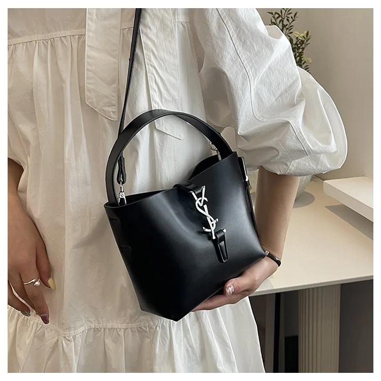 Женская сумка-мешок, минималистичный шикарный однотонный кошелек, трансформируемая сумка через плечо и сумка с верхней ручкой, просторная повседневная рабочая сумка на плечо