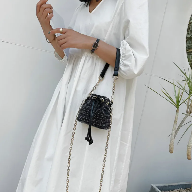 Женская сумка-мешок на шнурке, сумка-тоут, шерстяной кошелек и сумка для леди, сумки через плечо, женские сумки на цепочке через плечо