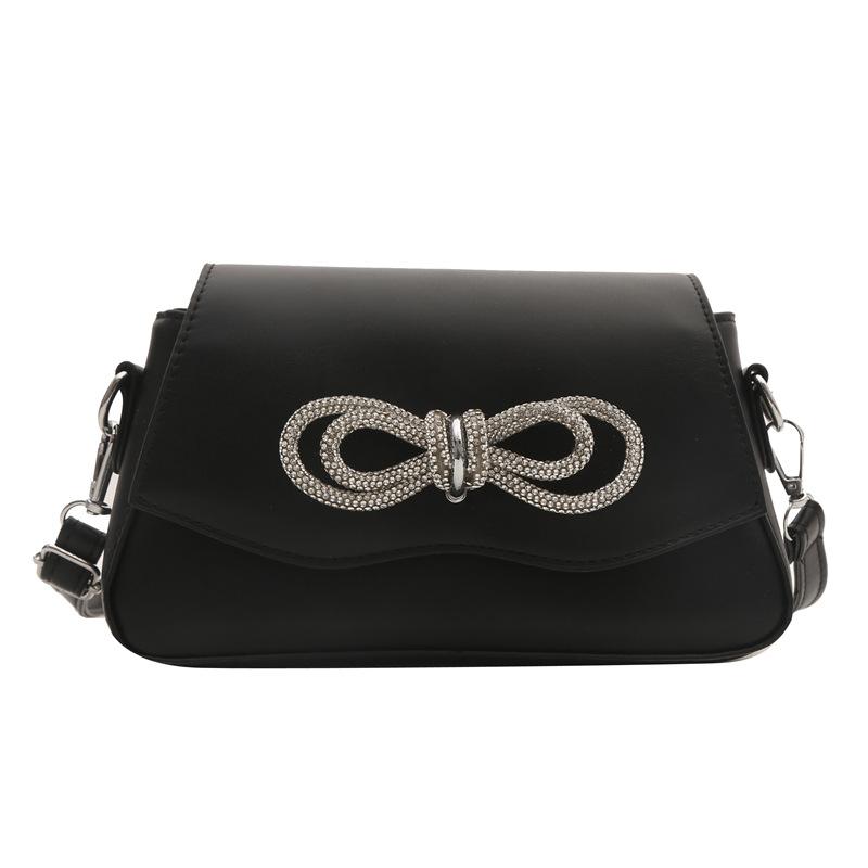 Женская сумка с бантом 2024 года, весна, новая модная иностранная текстура, простая повседневная модная сумка через плечо чёрный