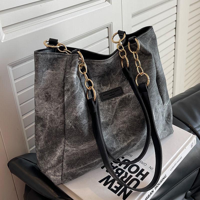 Женская сумка-тоут большой емкости с принтом этикеток из холста, женская сумка на одно плечо с швейной нитью, большая вместительная сумка чёрный