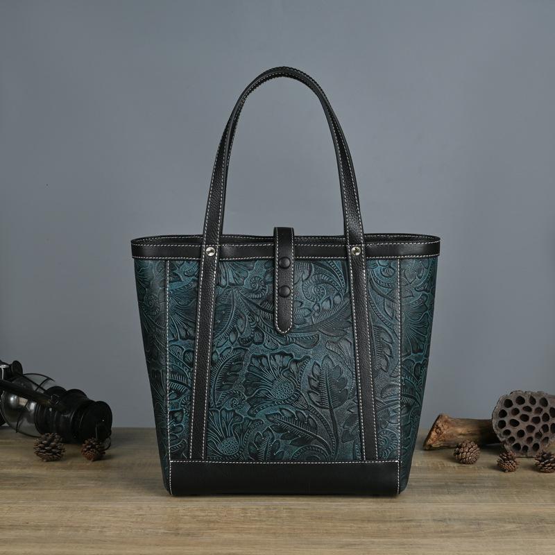 Женская сумка-тоут Johnature в стиле ретро, женская сумка из натуральной кожи, большая вместительная повседневная сумка на плечо из натуральной яловой кожи с ручным тиснением бездна