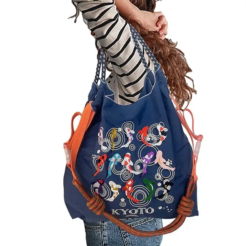 Женская сумка через плечо, Женская Повседневная сумка с вышивкой, многоразовая сумка-тоут для покупок
