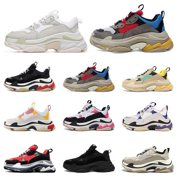 горячие тройной моды париж мужские тапки вскользь женщины черный белый розовый прохладный серый фиолетовый разводили теннисные тренеры спорт, Black