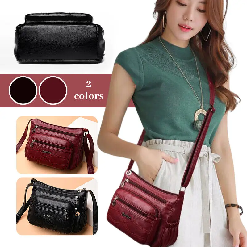 Женская сумка через плечо из искусственной кожи, с несколькими карманами