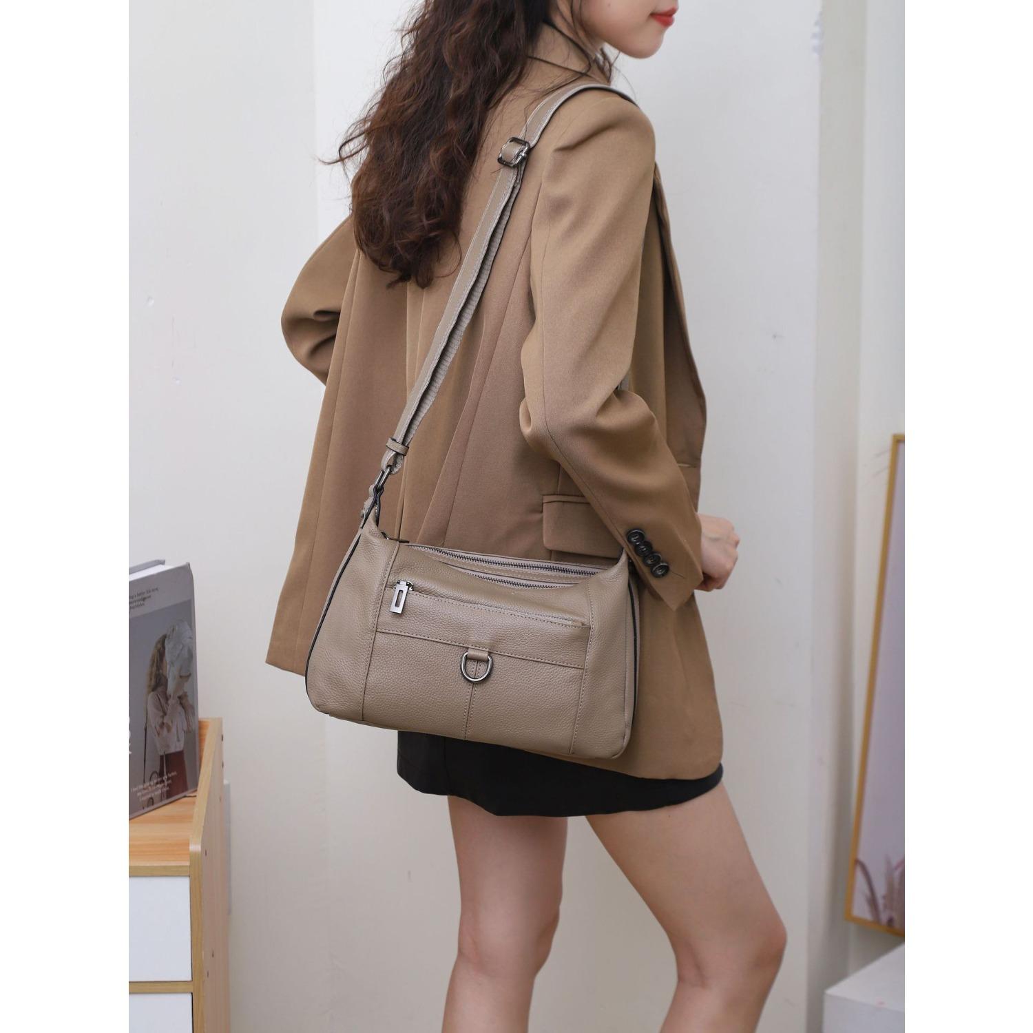 Женская сумка через плечо из коровьей кожи, большая вместимость, женская модная простая сумка-тоут, практичная сумка для поездок на работу, с несколькими отделениями, мягкая хаки