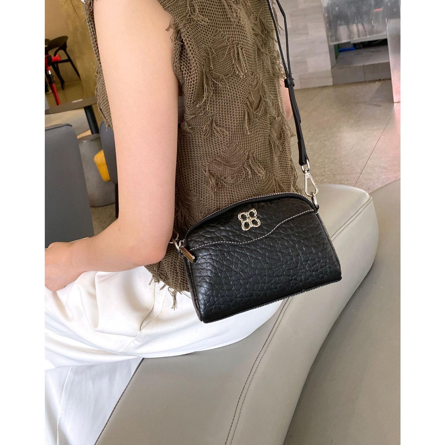 Женская сумка через плечо из коровьей кожи, простая модная сумка, сумка-ракушка для девочек, многоотдельная, из мягкой кожи чёрный