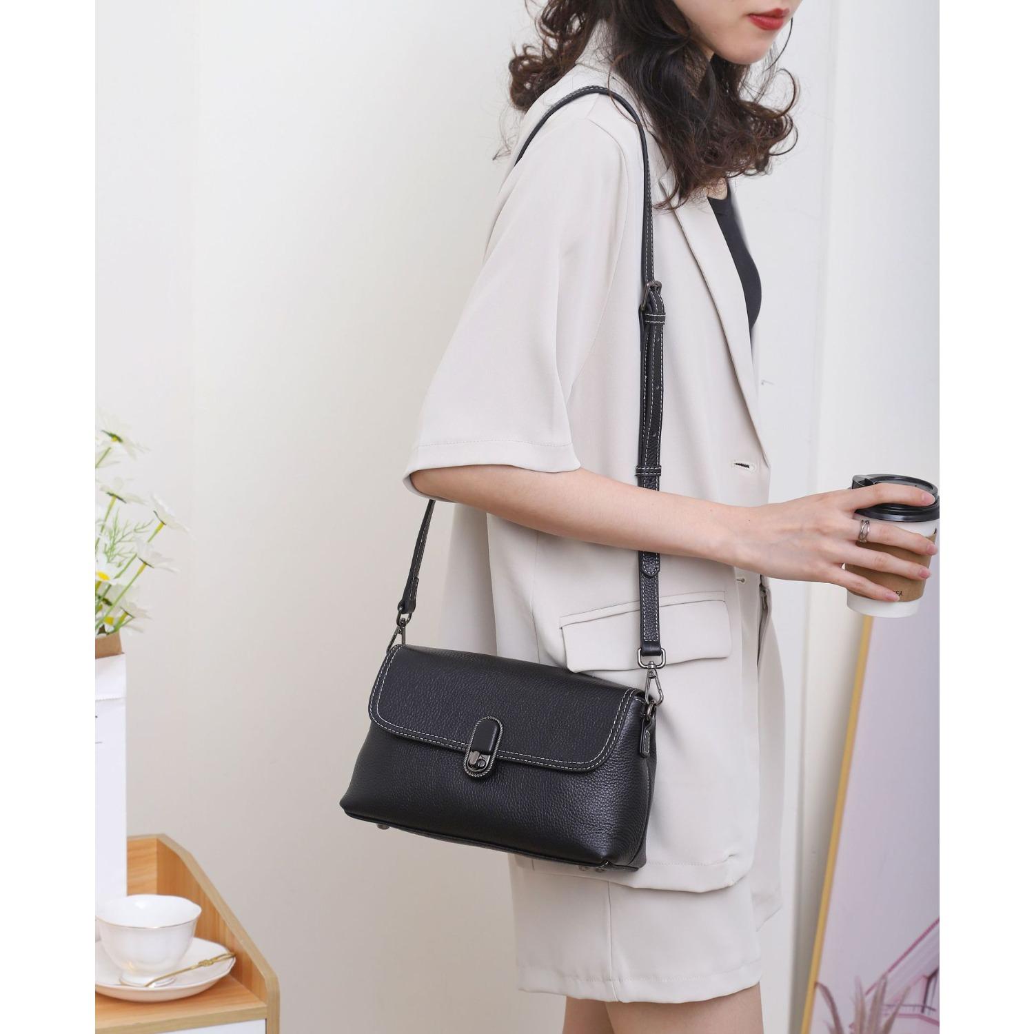 Женская сумка через плечо из коровьей кожи с замком, большая сумка-тоут для покупок, модная и простая чёрный